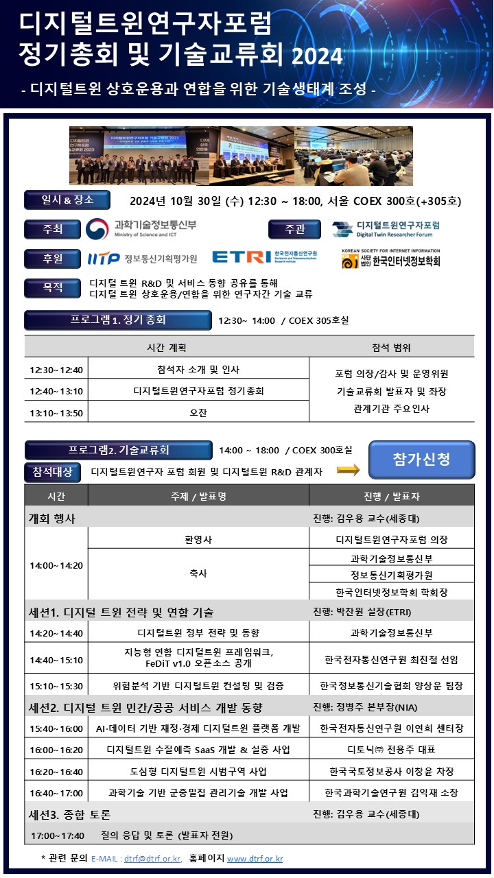 행사명: 디지털트윈연구자포럼 정기총회 및 기술 교류회 2024