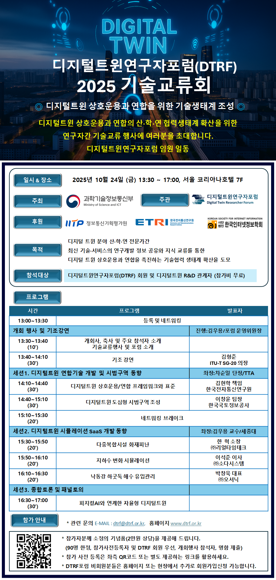 디지털트윈연구자포럼 2025 기술교류회 프로그램 공지 (사전등록 사이트 주소 포함)